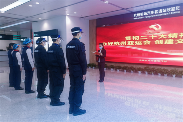 为学习宣传贯彻党的二十大精神,持续深化一线队伍红色学习,杭州机场以“红色班前会”为载体,通过政治宣讲员带头讲、一线职工分享讲等形式,在各基层开展党的二十大精神宣讲活动,在广大员工中掀起学习热潮。