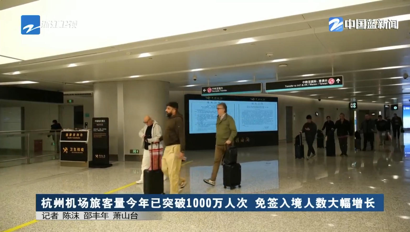 浙江新闻联播:杭州机场旅客量今年已突破1000万人次 免签入境人数大幅增长