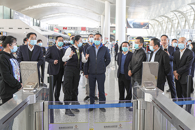 王敏一行现场考察银川机场保洁实景培训中心、银川国际航空港综合交通枢纽、便捷出行服务、AOC指挥中心、机坪员工之家等,并分别与相关业务部门进行互动探讨。银川机场集人工智能、人脸识别、视频分析为一体的便捷出行服务令人难忘,高效便捷、快速集散的综合交通枢纽,舒适温馨的员工之家等方面值得在浙江机场改扩建工程建设中吸收借鉴。(马竞妍)