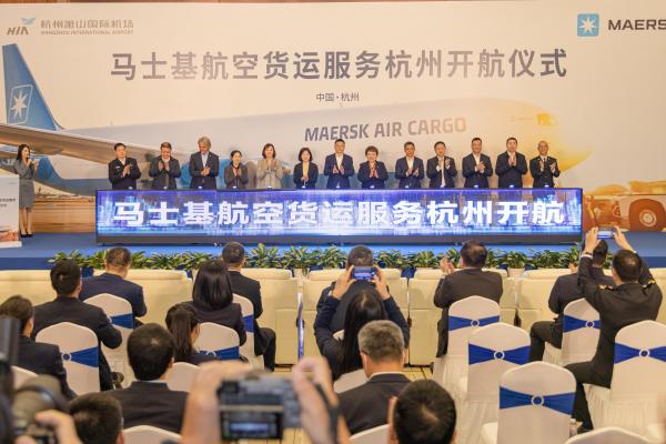 浙江省政府副秘书长蒋珍贵,省口岸办、交通厅、商务厅,杭州市及萧山区政府等领导嘉宾,民航监管局、省机场集团、海关、边检、中航油、杭州机场等相关负责人,以及马士基大中华区管理团队出席仪式。