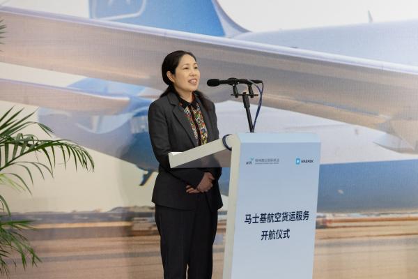 4月6日上午,浙江省机场集团在杭州机场迎宾楼举行马士基货运航空开航仪式。