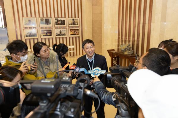 当天的活动吸引了20余家媒体记者前来采访报道。图为浙江空港物流公司总经理张荣在仪式结束后接受媒体采访。
