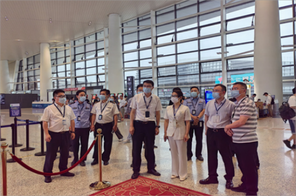 工作组一行先后探勘了T2航站楼、贵宾楼和T1航站楼国际厅保障流线,视察了抵离服务台、专用值机柜台、指定安检通道、上下客点位、交通蓄车场等区域。