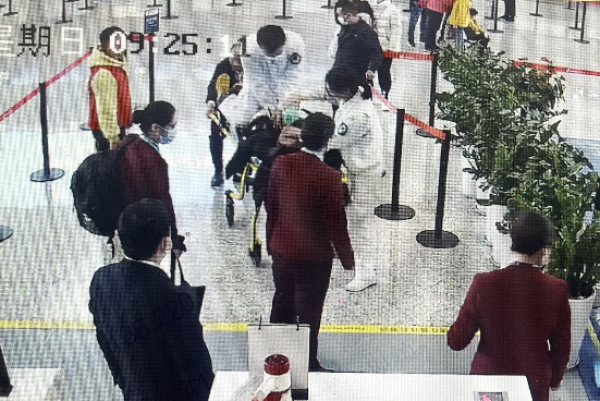 2月18日上午9:14,杭州机场T4医疗点接到值机柜台的求救电话。情况紧急!杭州机场急救中心医护人员晁东水与刘哲携带急救物品于2分钟内到达现场,发现旅客无意识、无颈动脉搏动、无自主呼吸,初步诊断为心跳呼吸骤停。