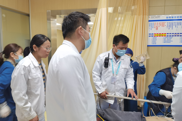 9:27,奇迹出现,旅客短暂恢复自主心律又马上消失,这让医护人员看到了曙光。抢救仍在继续,虽是春寒料峭的2月,医护人员的棉毛衫都已被汗水浸湿。